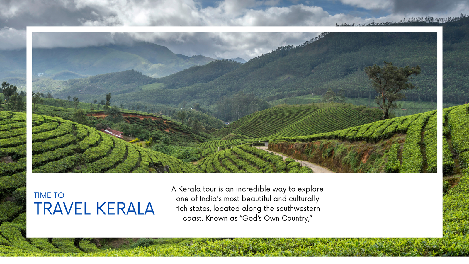 Kerala Known as “God’s Own Country,” Kerala is a tropical paradise in southern India, famous for its lush landscapes, serene backwaters, hill stations, and vibrant culture. A tour through Kerala offers a rich blend of natural beauty, wildlife, traditional art forms, and a taste of authentic cuisine.